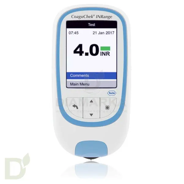 Портативный аппарат для контроля состояния у пациентов, принимающих антикоагулянты (препараты, разжижающие кровь). При помощи прибора CoaguChek INRange можно быстро и без какой-либо предварительной подготовки провести анализ крови на факторы свертываемости.Особенности CoaguChek INRange