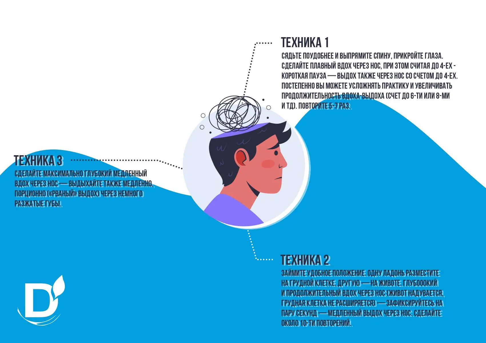 Используйте практики, которые помогают относительно быстро снять напряжение и стресс. Это могут быть:- дыхательная гимнастика