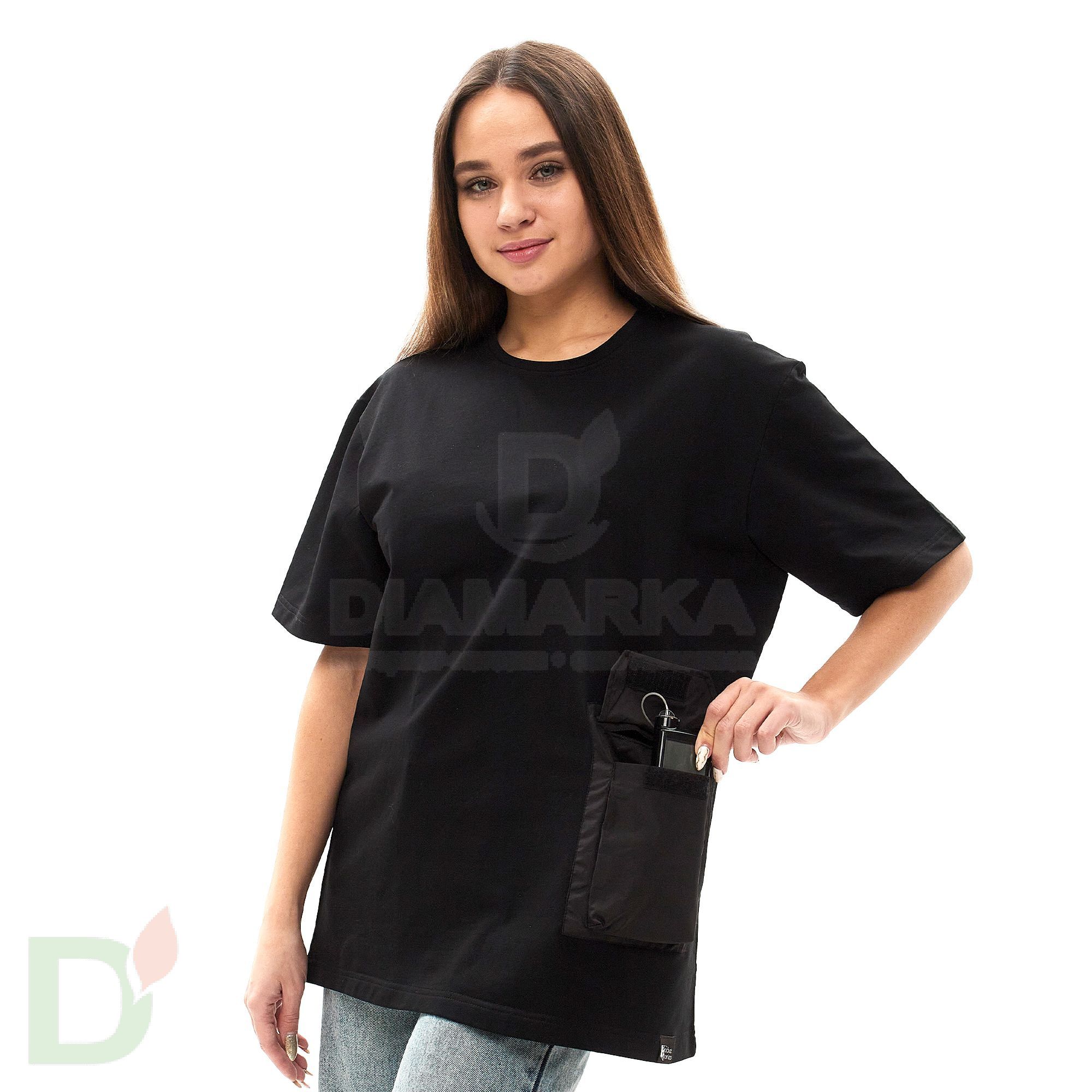 Футболка oversize с накладным карманом для инсулиновой помпы.