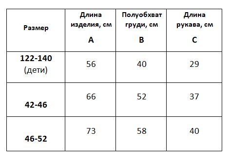 С - длина рукава (от горловины)