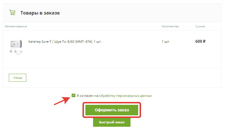 После этого в нижней строке поставьте «галочку» о согласии на обработку персональных данных, нажмите кнопку «Оформить заказ»: