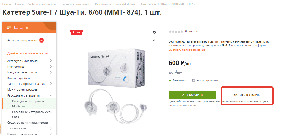 Чтобы не тратить свое время на заполнение большого количество полей с информацией, вы можете оформить “Быстрый заказ”. Для этого, после выбора необходимого товара, нажмите на кнопку “Купить в 1 клик”: