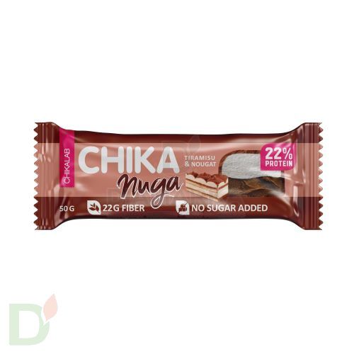 <h2>Питательный протеиновый батончик без сахара и муки</h2> Выбор продукта для перекуса - дело ответственное! Ведь важно, чтобы было не просто вкусно и питательно, но и полезно.<br> <br> Знакомьтесь с новинкой от CHIKALAB - протеиновые батончики с нежнейшей воздушной нугой CHIKA NUGA! Основа батончика - воздушная, мягкая и нежная двухслойная нуга, а покрывает ее невероятный молочный шоколад. Все это - без грамма сахара, пшеничной муки и прочих нежелательных ингредиентов!<br> <br> <h3>Преимущества батончиков CHIKA NUGA</h3> Высокое содержание белка и полезной для работы ЖКТ клетчатки делает этот батончик не просто вкусным десертом, но и крайне питательным! После подобного перекуса чувство голода еще долго вас не посетит.<br> <br> Масса нетто: 50 гр<br> Срок годности: 12 месяцев<br> <br> <b>Если вам кажется, что полезное не может быть вкусным, значит вам точно пора попробовать CHIKA NUGA!</b><br> <b> </b><b> </b> <h3>Состав протеиновых батончиков с нугой</h3> белки молочные (концентрат сывороточного белка, концентрат молочного белка), изомальтоолигосахарид, вода, масло кокосовое, олигофруктоза (пищевые волокна), молоко сухое обезжиренное, водорастворимые волокна кукурузы, подсластители (мальтит, сорбит), инулин (пищевые волокна), какао-порошок алкализованный, агент влагоудерживающий (глицерин), сухой яичный белок, эмульгатор (соевый лецитин), соль, загуститель (каррагинан), регулятор кислотности (лимонная кислота), консерванты (сорбат калия, бензоат натрия), антиокислитель (аскорбиновая кислота), ароматизатор натуральный, молочный шоколад (водорастворимые волокна кукурузы, какао масло, какао тертое, молоко сухое обезжиренное, эмульгатор (соевый лецитин), ароматизаторы натуральные, подсластитель (сукралоза)).<br> <br> Содержит подсластители. При чрезмерном употреблении может оказывать слабительное действие. Может содержать незначительное количество арахиса.<br> <h4>Пищевая ценность на 100 гр</h4> 469 ккал<br> 44 гр клетчатки<br> 20 углеводов<br> 24 жиров<br> 22 белков