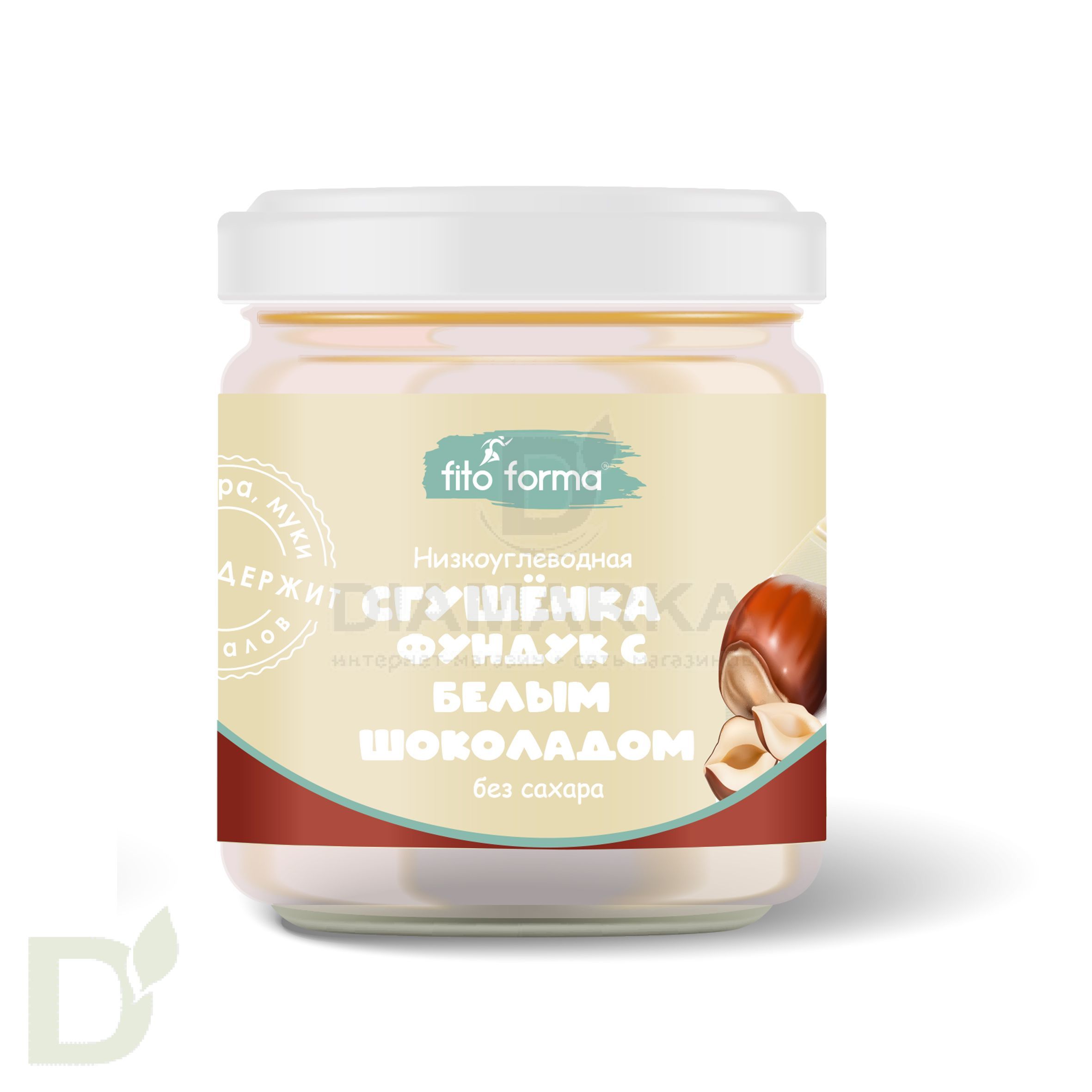 <h2>Низкоуглеводная сгущенка без сахара для тех, кто на диете</h2> Сгущенка - это лакомство из детства. С блинчиками, сырниками, даже хлебом... да что уж там, многие ели ее ложкой прямо из банки! А сладость такая, что челюсть сводит...<br> <br> Уже во взрослом возрасте мы понимаем, что сгущенка - не самый полезный продукт. В ней много сахара, жиров и лишних калорий. Но отказаться от любимого лакомства непросто.<br> <br> Сгущенка Fito Forma - это десерт, который смело можно отнести к классу "ПП-продукты"!<br> <br> <h3>Чем хороша сгущенка Fito Forma?</h3> <ul> <li>в ней в среднем в 5 раз меньше калорий</li> <li> в 6 раз меньше углеводов</li> <li> в составе нет сахара</li> <li> натуральный, естественный, в меру сладкий вкус</li> <li> безопасный состав</li> </ul> <h3>Как и с чем съесть сгущенку?</h3> Уверены, вы и сами знаете как расправиться с этим продуктом. Но пару идей вам все же подкинем ;)<br> <ul> <li>в качестве намазки на тосты, хлебцы, печеньки, блинчики, оладьи или сырники</li> <li> с запеканкой или кашей</li> <li> как вкусоароматический компонент для крема при приготовлении домашних десертов и тортов</li> <li> в сгущенку вкусно макать дольки яблок, персиков, банана или других фруктов</li> <li> чайная ложка такой сгущенки в кофе сделает напиток вкуснее!</li> </ul> <h4>Пищевая и энергетическая ценность на 100 грамм пасты</h4> усваиваемые ккал 159<br> 14,3 жиров<br> 7,7 углеводов<br> 8 белков<br> 44 грамм пищевых волокон<br> <br> Масса нетто: 280 грамм<br> <h4>Состав сладкой крем-пасты</h4> вода очищенная, изомальтоолигосахарид (пребиотик), фундук, какао масло, сывороточный протеин, пребиотик инулин, натуральный ароматизатор, консервант сорбат калия, эмульгатор соевый лецетин.