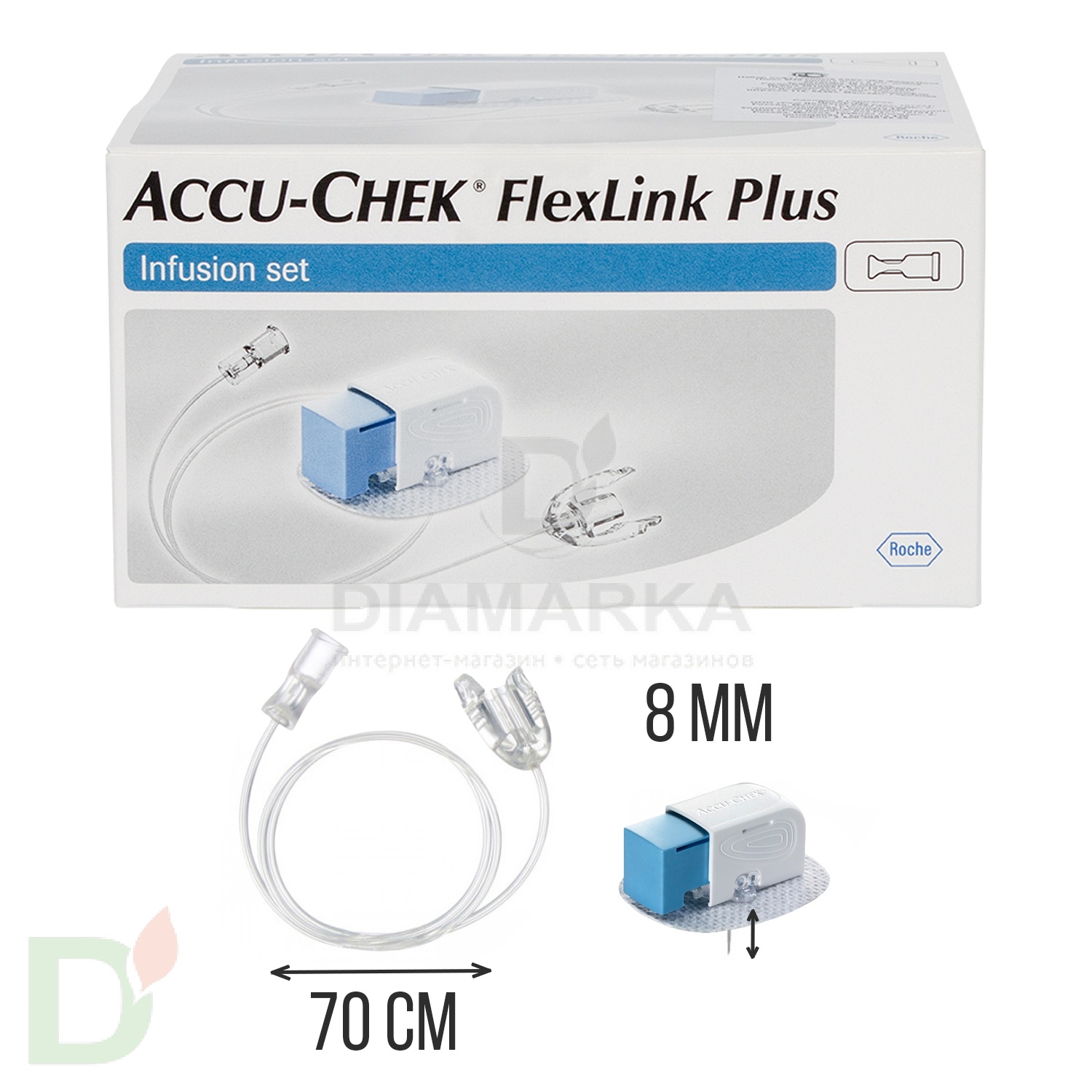 НОВИНКА! Инфузионный набор Акку-Чек ФлексЛинк Плюс с канюлей 8 мм. и катетером 70 см.