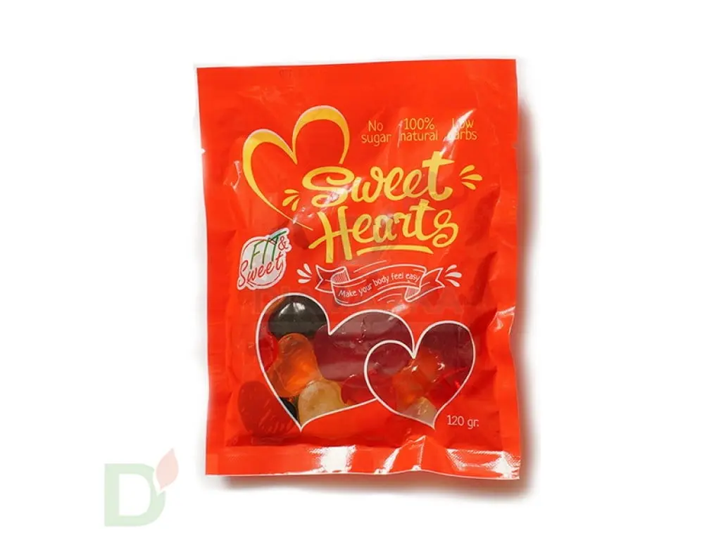 Попробуйте новинку - низкокалорийный фруктовый жевательный мармелад без сахара со вкусом спелого ананаса, сочного апельсина, сладкой малины, бодрящего лимона и наливного яблока. Вкус лета в каждом сладком сердечке!
