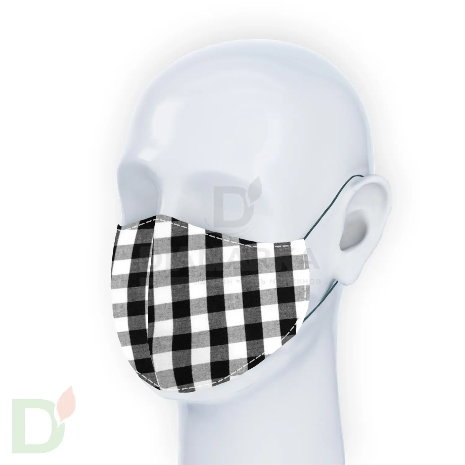 Материал маски - натуральный, приятный коже хлопок. Благодаря удобным ушным петлям и анатомической форме такая маска максимально комфортна в ношении.