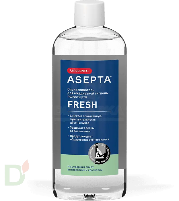 Асепта Фреш - комплексный ополаскиватель для ежедневной гигиены полости рта. Обладает следующим действием:- снижает повышенную чувствительность зубов