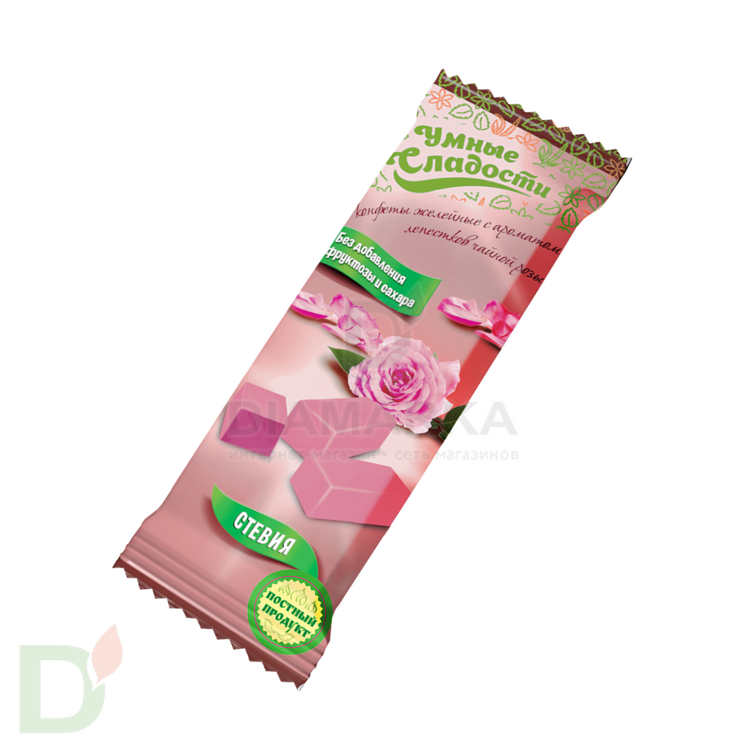 патока, изомальт, загуститель-пектин, регулятор кислотности-кислота лимонная, влагоудерживающий агент-лактат натрия, ароматизатор «Чайная роза», краситель пищевой, подсластитель-стевия.